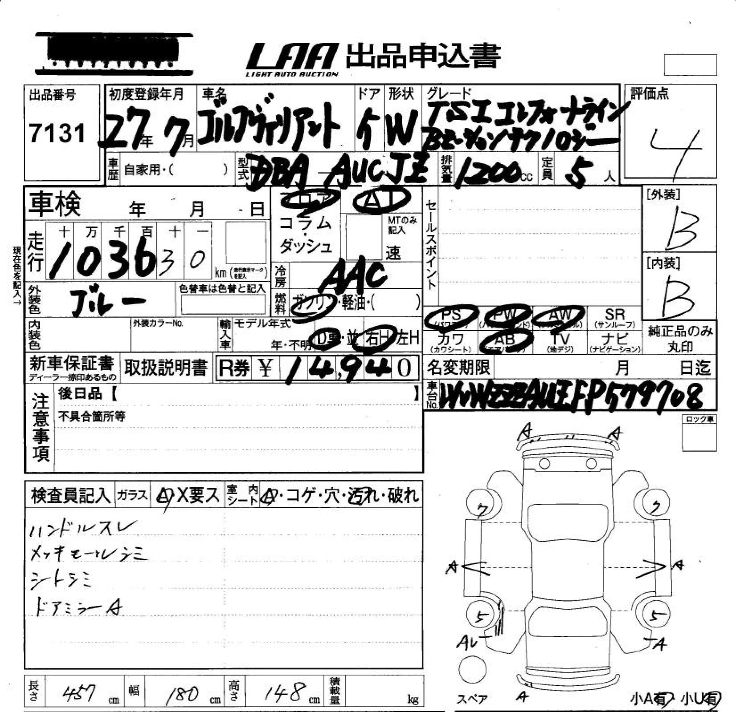 TSI HIGHLINE BLUEMOTION TECHNOLOGY | DBA-AUCHP | CHP | FF | 7AT | 1394cc | 140ps(103kW)/4500~6000rpm | AИ-95 | 3 487 000 | |