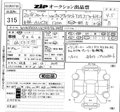 Volkswagen GOLF VARIANT 2018 • 1030211 ₽ под ключ из Японии