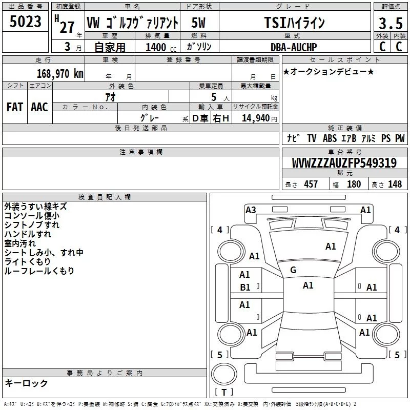 Volkswagen GOLF VARIANT 2015 • 800156 ₽ под ключ из Японии