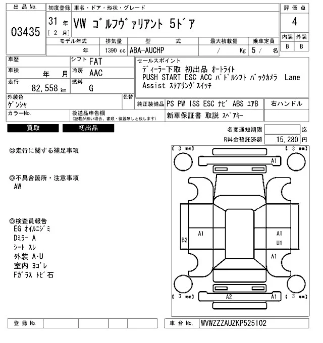 Volkswagen GOLF VARIANT 2019 • 1258728 ₽ под ключ из Японии