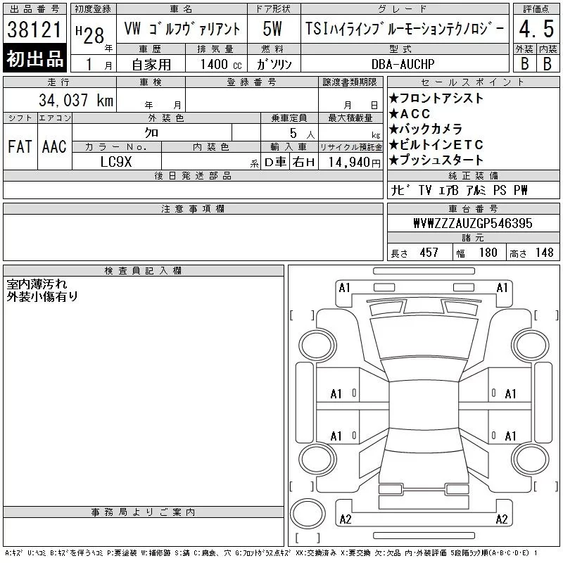 Volkswagen GOLF VARIANT 2016 • 1302063 ₽ под ключ из Японии