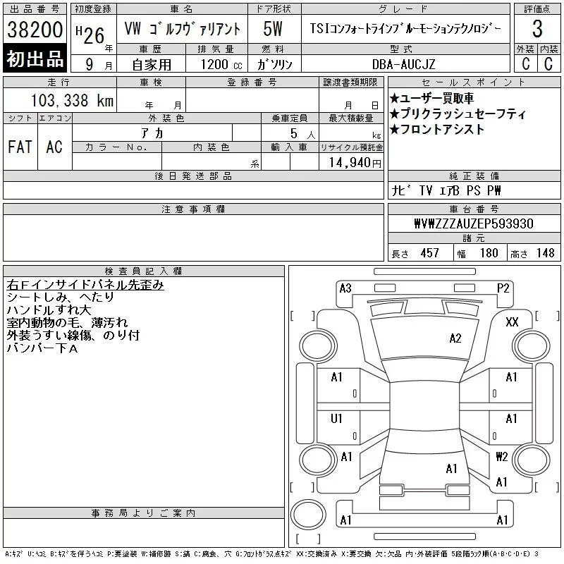 Volkswagen GOLF VARIANT 2014 • 641757 ₽ под ключ из Японии