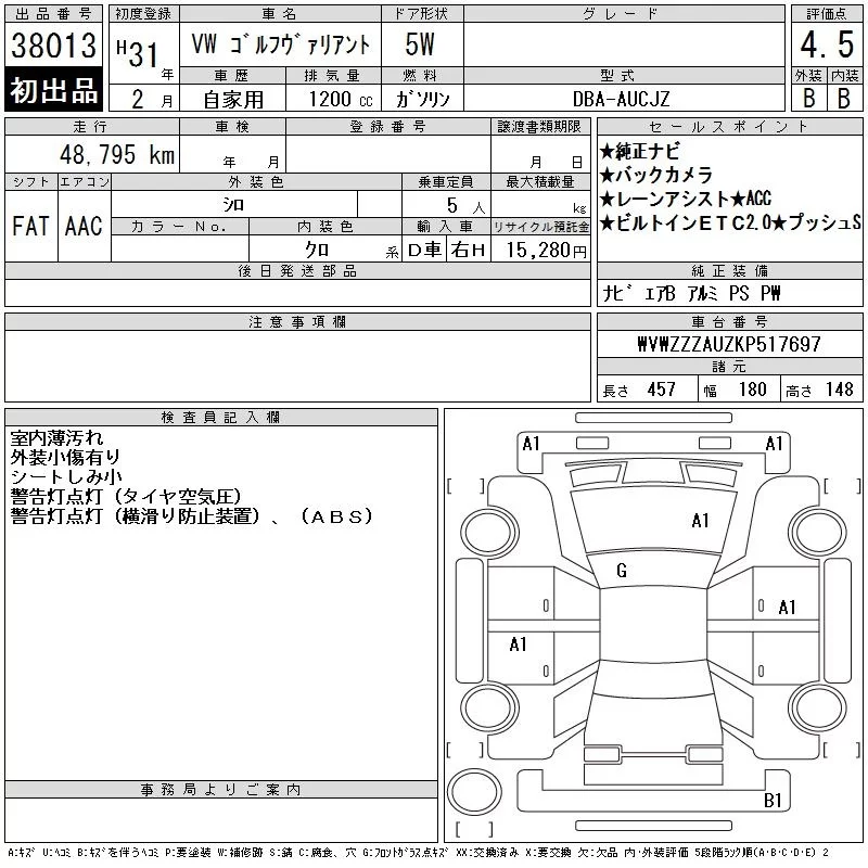 Volkswagen GOLF VARIANT 2019 • 1100586 ₽ под ключ из Японии