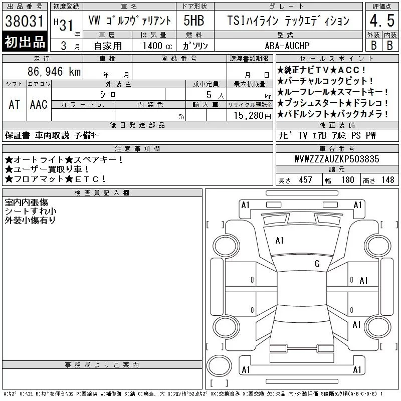 Volkswagen GOLF VARIANT 2019 • 1362558 ₽ под ключ из Японии