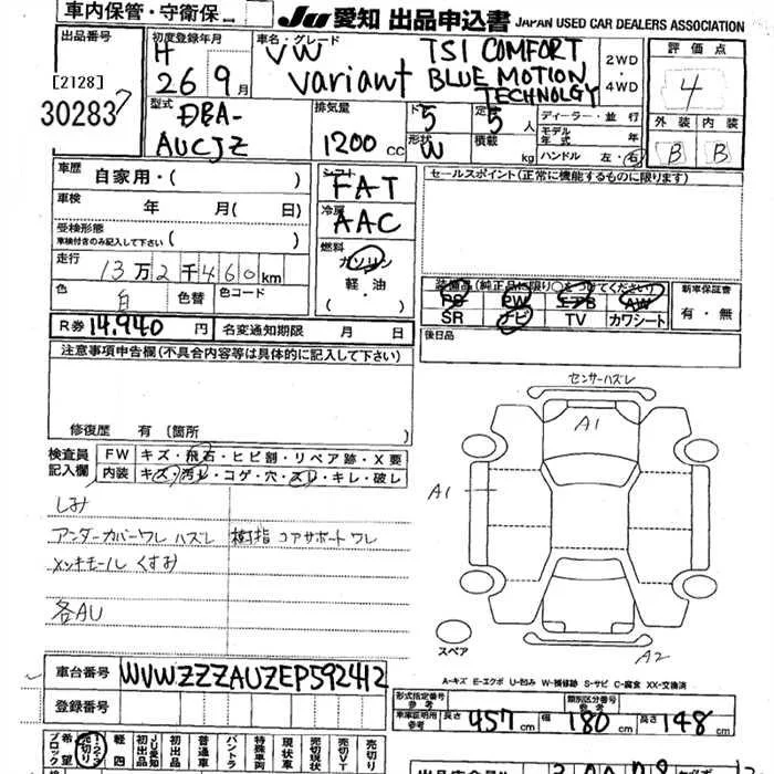 TSI HIGHLINE BLUEMOTION TECHNOLOGY | DBA-AUCHP | CHP | FF | 7AT | 1394cc | 140ps(103kW)/4500~6000rpm | AИ-95 | 3 350 000 | |