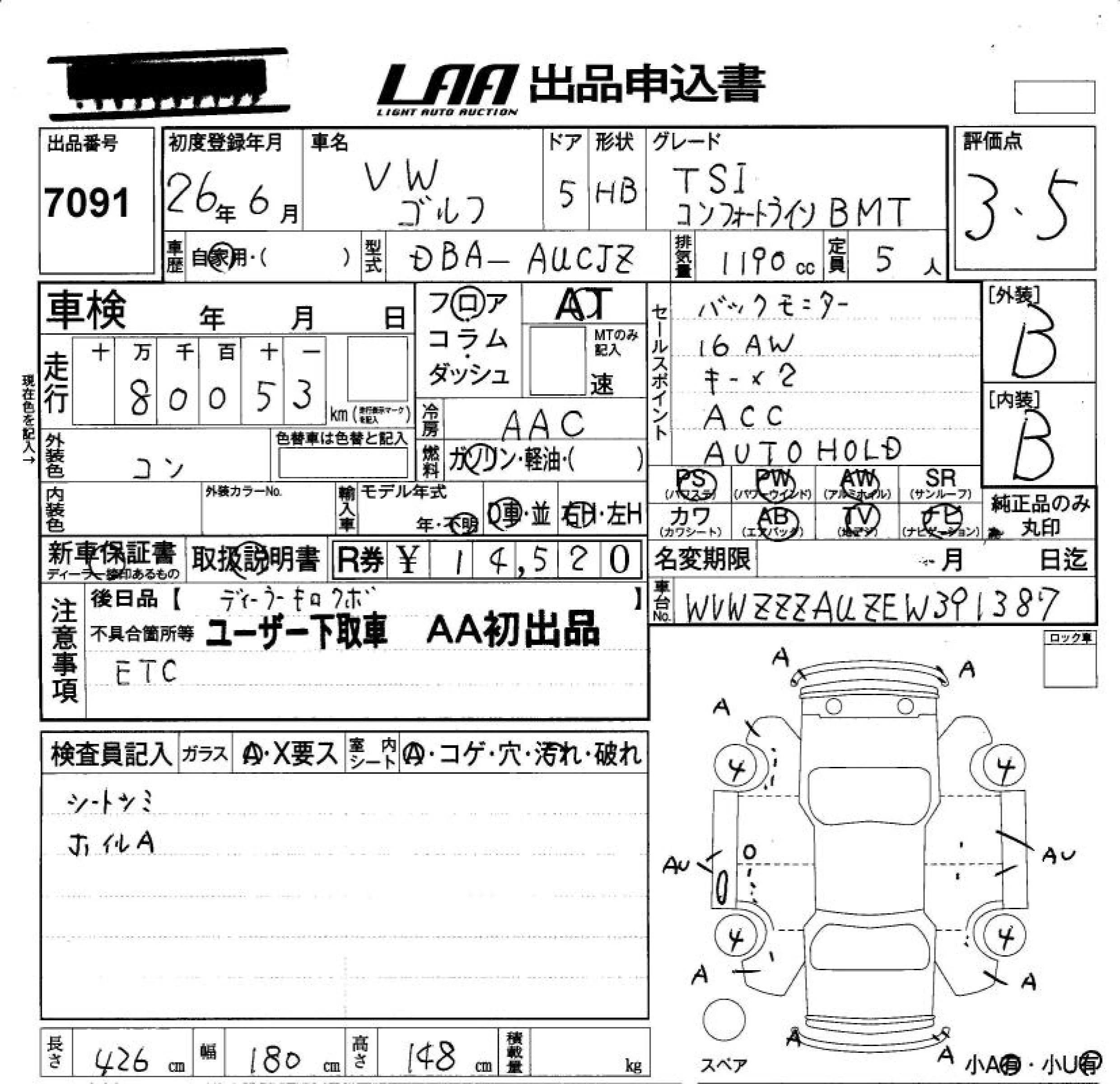 TSI HIGHLINE BLUEMOTION TECHNOLOGY | DBA-AUCPT | CPT | FF | 7AT | 1394cc | 140ps(103kW)/4500~6000rpm | AИ-95 | 3 109 000 | |