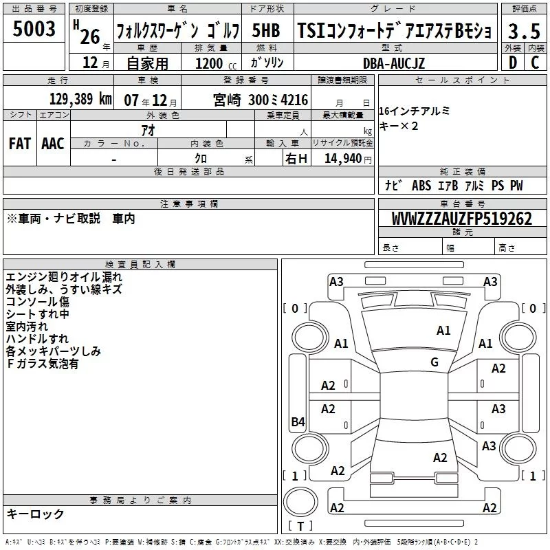 Volkswagen GOLF 2014 • 682041 ₽ под ключ из Японии