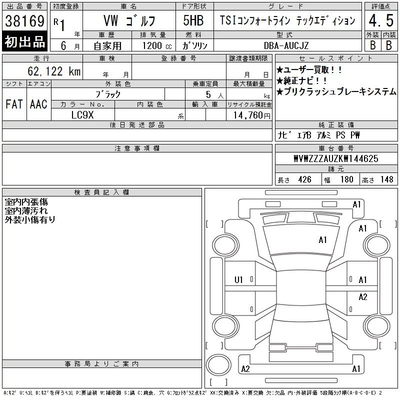 Volkswagen GOLF 2019 • 1286410 ₽ под ключ из Японии
