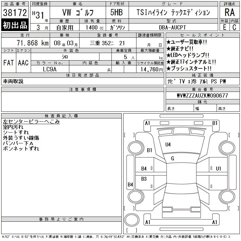 TSI HIGHLINE MEISTER | DBA-AUCPT | CPT | FF | 7AT | 1394cc | 140ps(103kW)/4500~6000rpm | AИ-95 | 3 670 000 | |