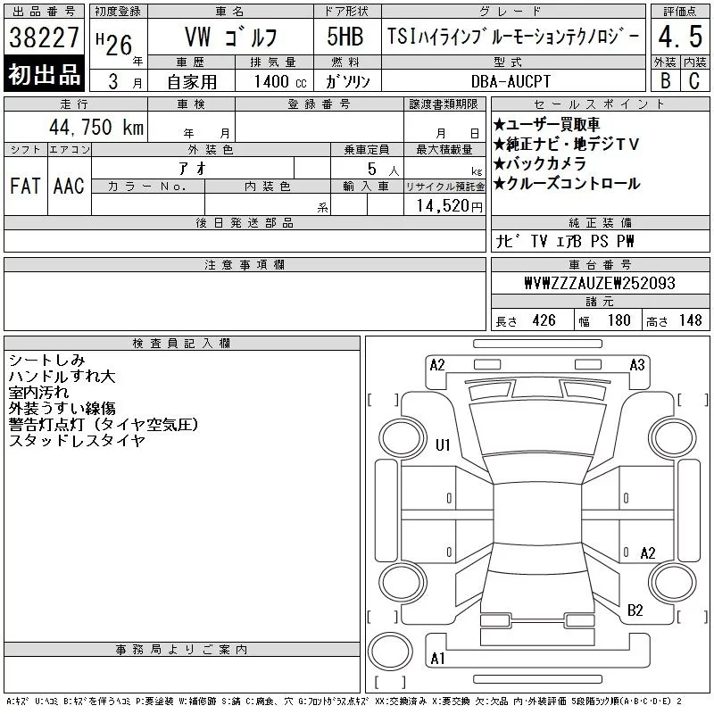 Volkswagen GOLF 2014 • 1016809 ₽ под ключ из Японии