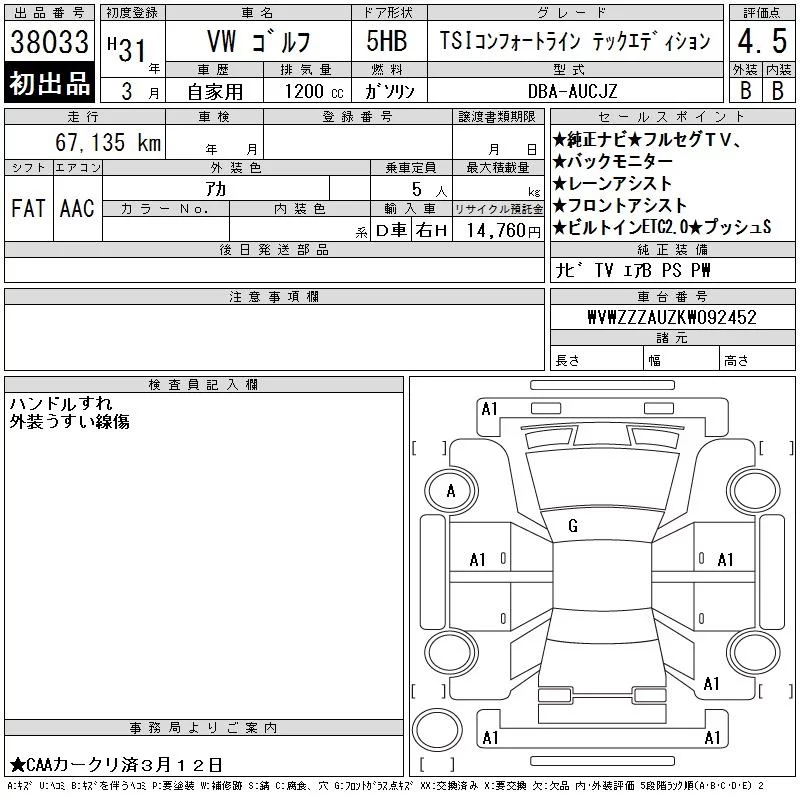 Volkswagen GOLF 2019 • 1202726 ₽ под ключ из Японии