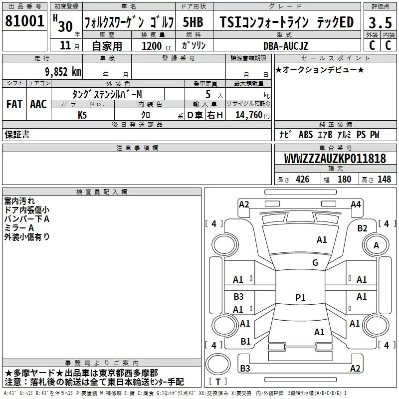 Volkswagen GOLF 2018 • 1201293 ₽ под ключ из Японии