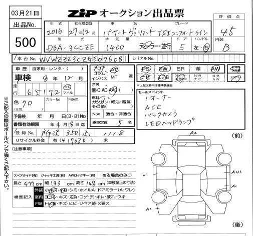Volkswagen PASSAT VARIANT 2015 • 1307681 ₽ под ключ из Японии