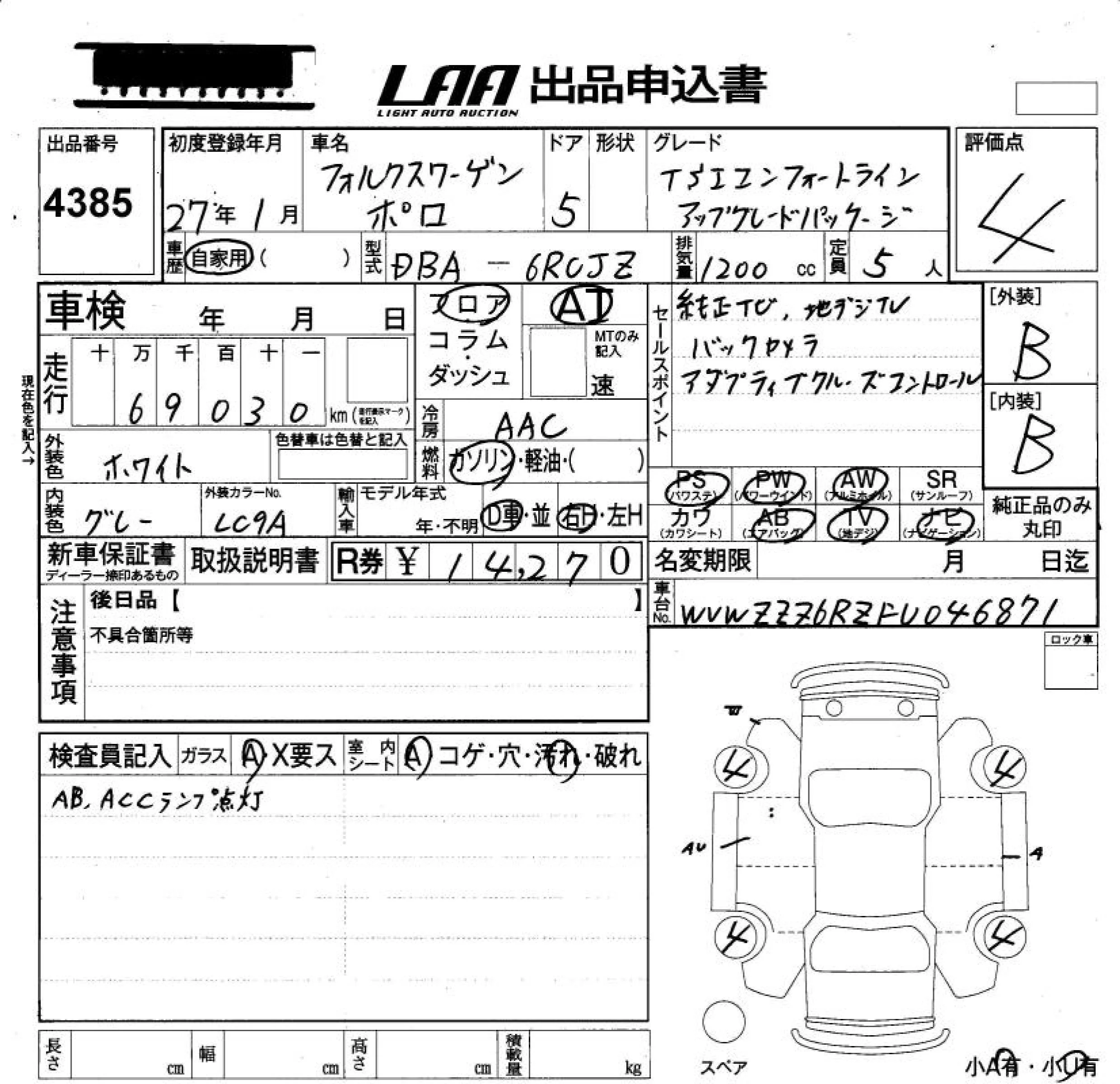 CROSS POLO | DBA-6RCJZW | CJZ | FF | 7AT | 1197cc | 90ps(66kW)/4400~5400rpm | AИ-95 | 2 805 000 | |