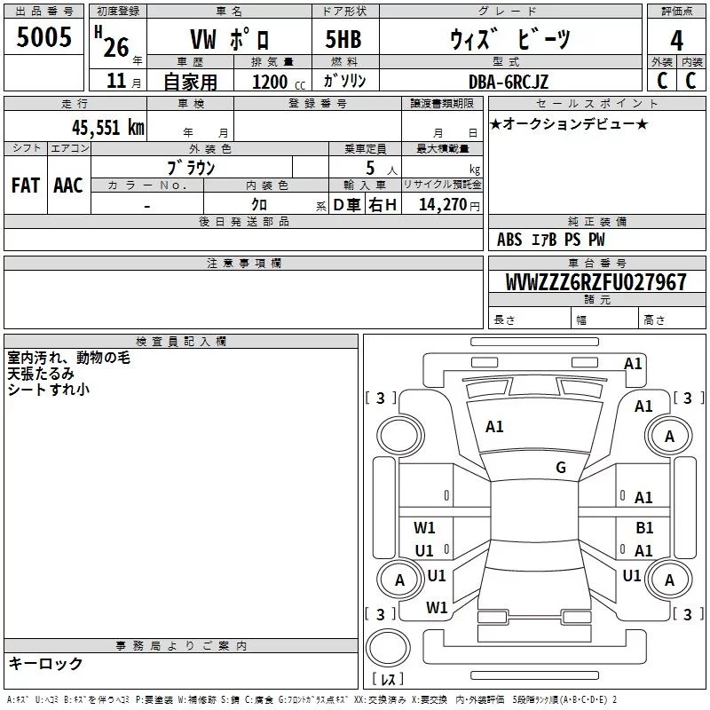 CROSS POLO | DBA-6RCJZW | CJZ | FF | 7AT | 1197cc | 90ps(66kW)/4400~5400rpm | AИ-95 | 2 750 000 |