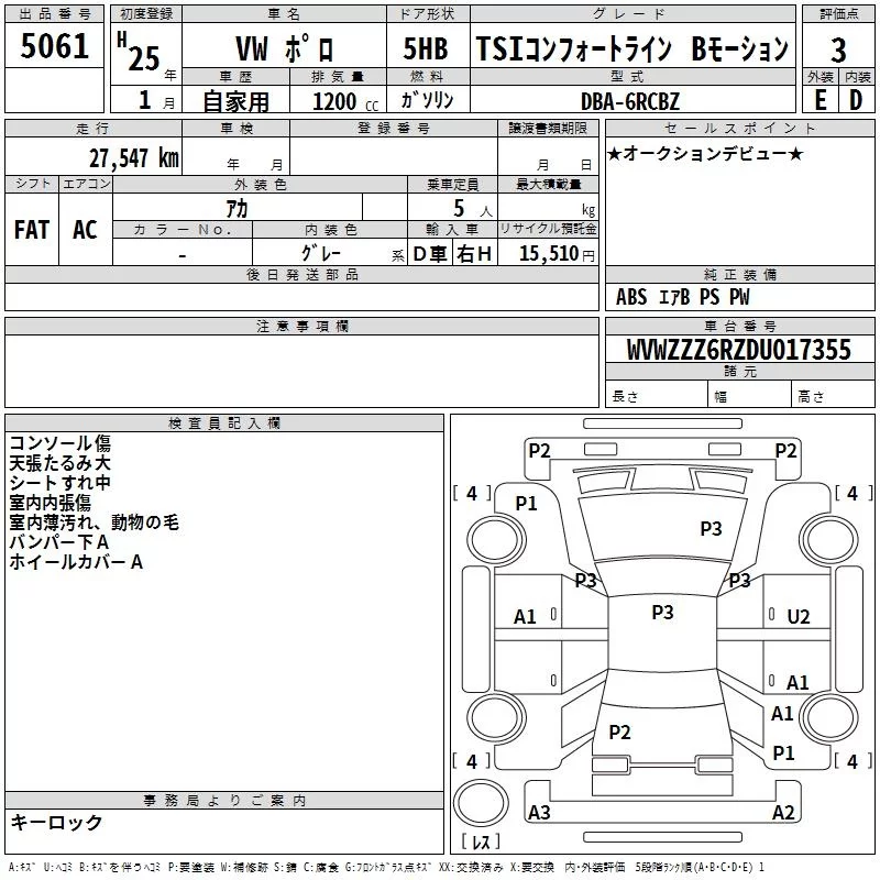 CROSS POLO | DBA-6RCBZW | CBZ | FF | 7AT | 1197cc | 105ps(77kW)/5000rpm | AИ-95 | 2 600 000 | |