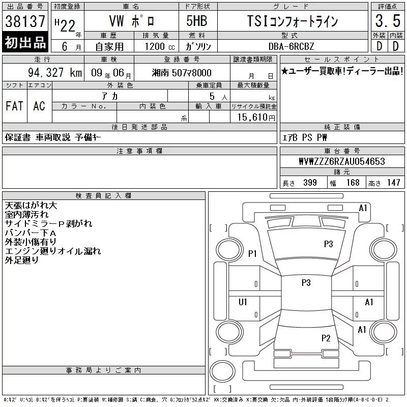 CROSS POLO | DBA-6RCBZW | CBZ | FF | 7AT | 1197cc | 105ps(77kW)/5000rpm | AИ-95 | 2 600 000 | |