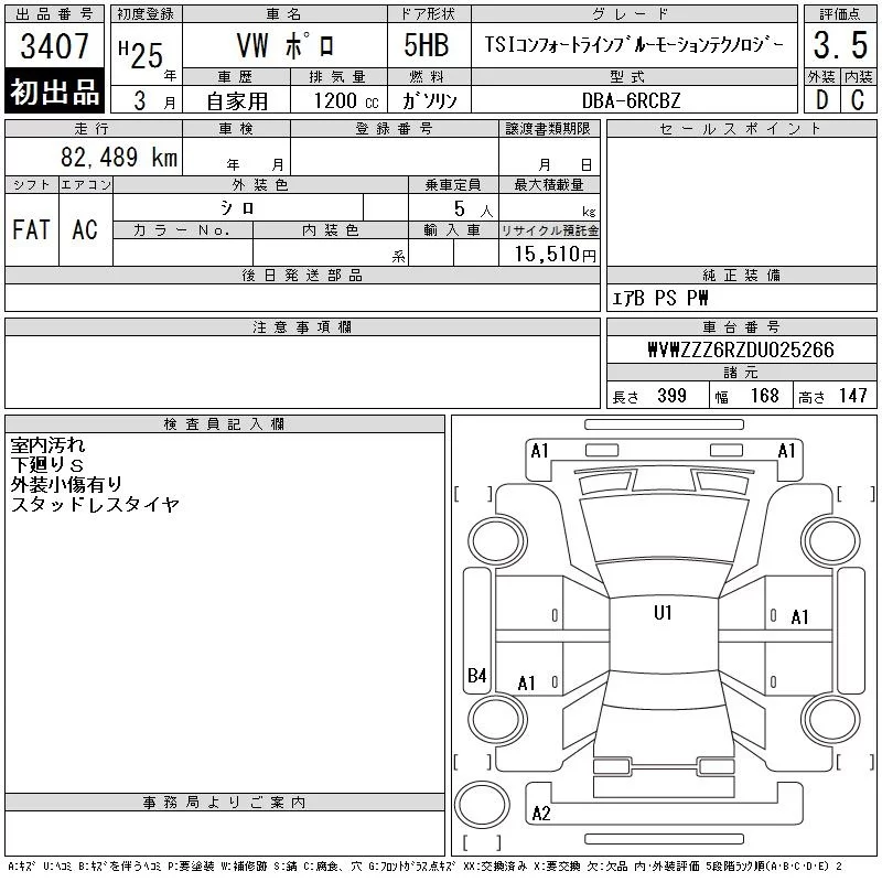 ACTIVE BLUEMOTION TECHNOLOGY | DBA-6RCBZ | CBZ | FF | 7AT | 1197cc | 105ps(77kW)/5000rpm | AИ-95 | 2 320 000 | |
